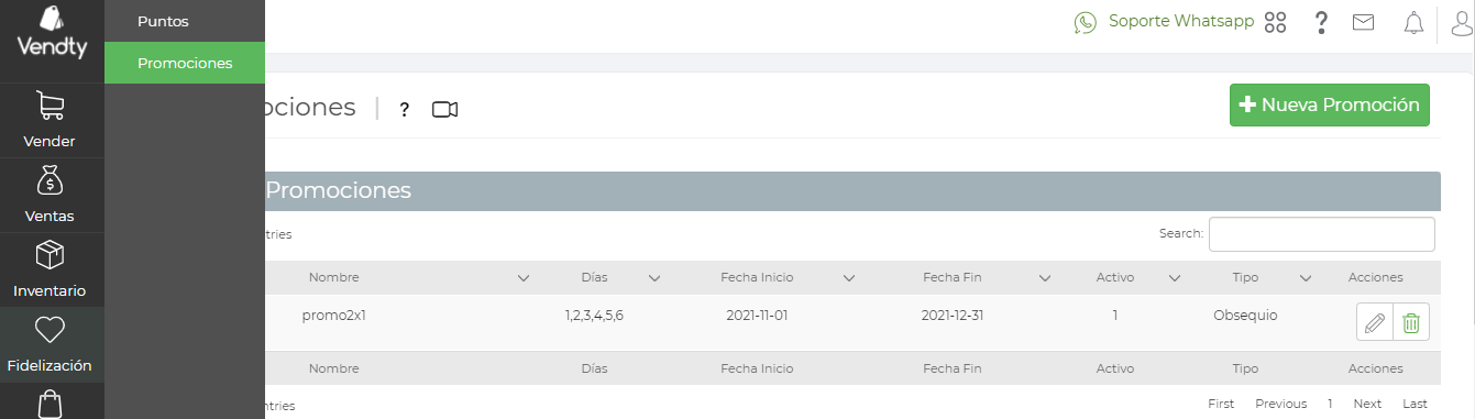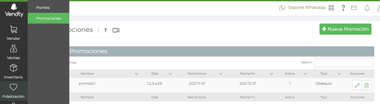 ¿Ves? Es muy sencillo configurar tus promociones en Vendty. Y lo mejor de todo, lo puedes hacer en muy pocos minutos, ahora podrás empezar a ofrecerle nuevos e innovadores incentivos a tus clientes y atraerlos para que hagan recompra o empiecen a recomendar tu negocio.