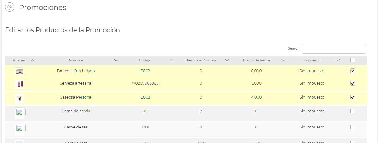 En caso de que una promoción no aparezca en el módulo de ventas, debes revisar que la casilla Activo esté habilitada