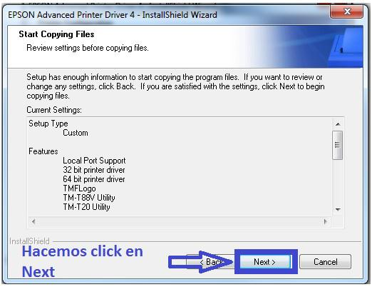Debes descargar el drive para la impresora Epson en el siguiente link