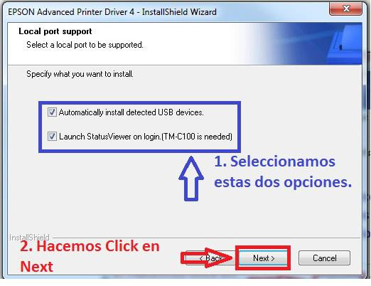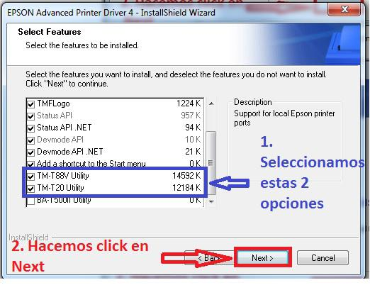 6. Seleccionamos TM-T88V Utility y TM-T20 Utility y hacemos click en Next.