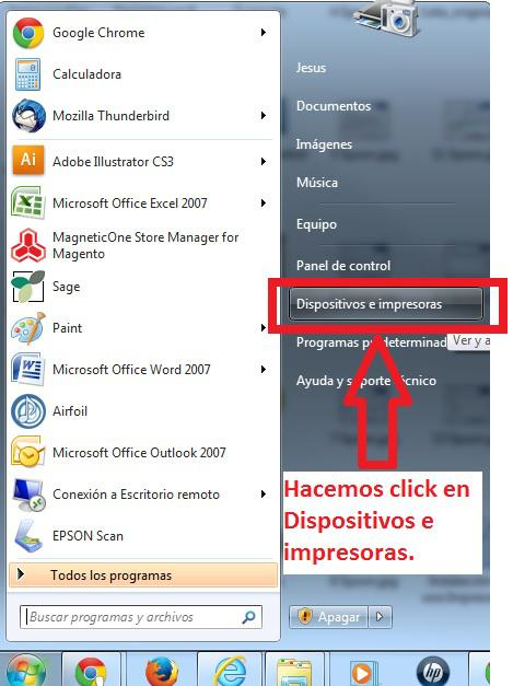 14. Ahora vamos a darle la configuración para que imprima sin problemas. Nos vamos al menú «dispositivos e impresoras».