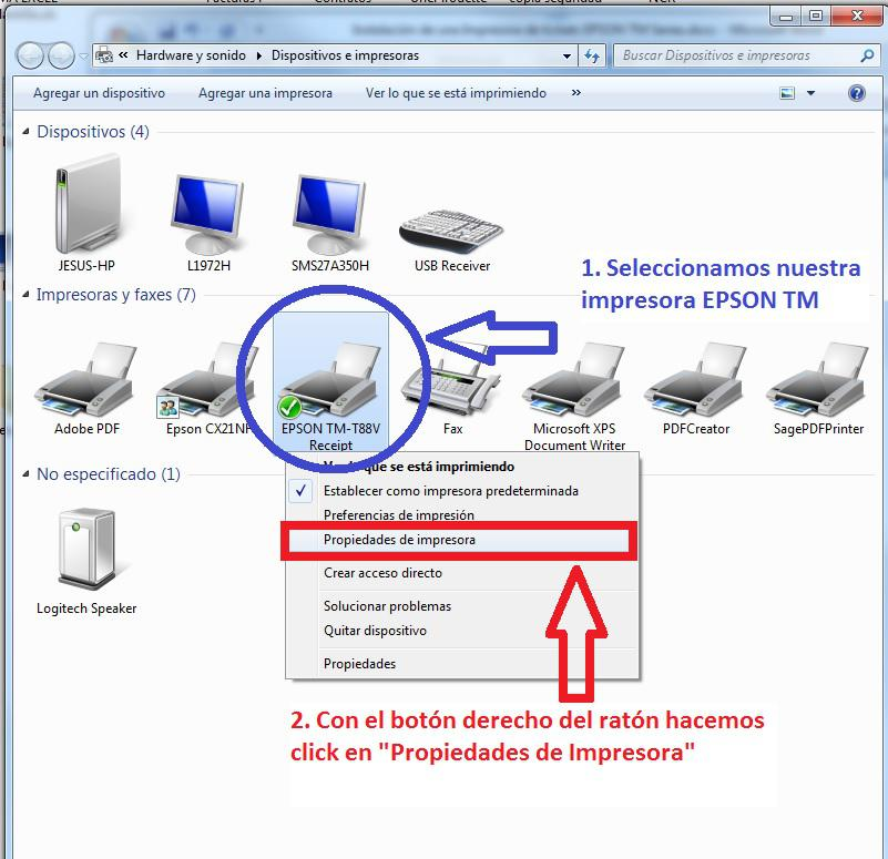 Sigue los paso para instalar la impresora EPSON de la referencia TM-T88V y Epson TM-T20