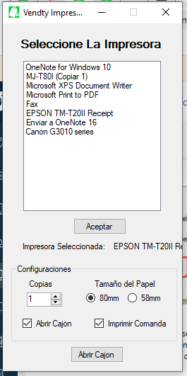 Apertura de cajón monedero y si necesitas la impresión de comanda.