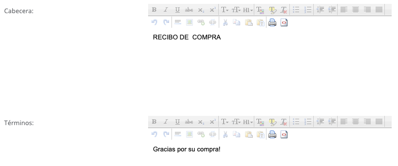 -Tamaño: Escoge el tamaño del papel, puede ser Media Carta (para servicios) o Tirilla (para puntos de venta).