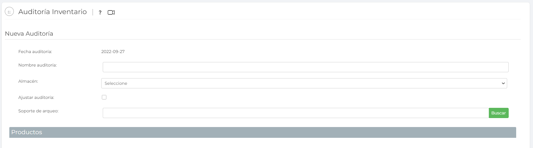 1. Entra a Auditoria de Inventario (Inventario - Auditoria de Inventario)