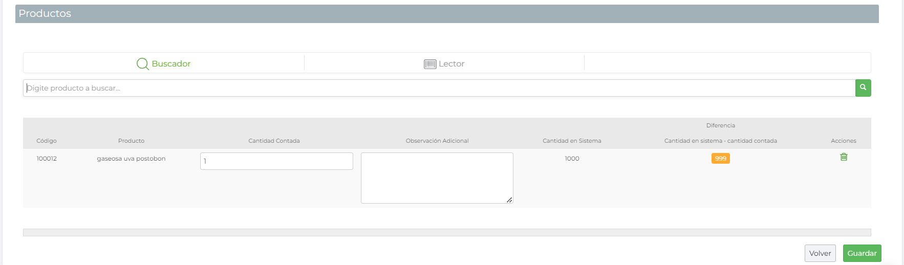 • Cantidad contada: Cuántos productos hubo en el conteo que realizaste