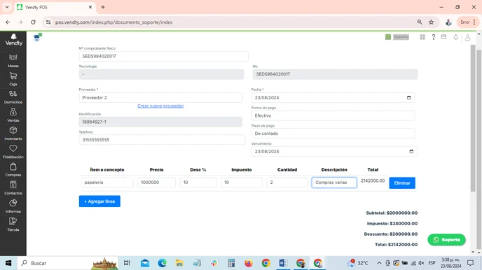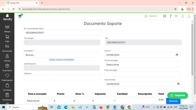Aprende como se realiza el documento soporte equivalente a través de Vendty.