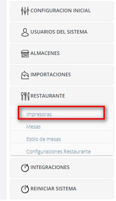 8. Entra a Vendty POS y sigue la siguiente ruta Configuración > Restaurante > Impresoras.