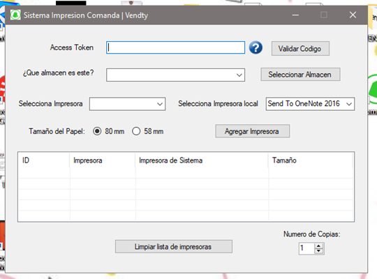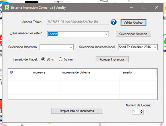 9. Al ingresar, te aparecerá el código con el que podrás enlazar tu impresora al sistema, de tal forma que al imprimar la comanda sea un proceso automático desde Vendty.