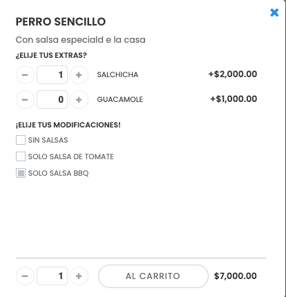 Nota: Si agregas un ingrediente en la parte de modificaciones, estos no se descontarán del inventario de forma automática.