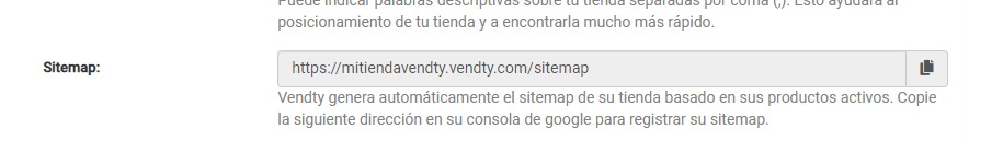 3. Encontrarás en esta sección la palabra "Sitemap" y al lado el enlace. Solo debes dar clic en el icono para copiar la URL.