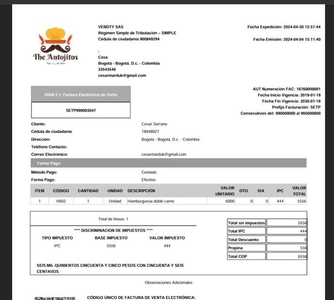 Como empresa puedes ver en el histórico de ventas las dos opciones, facturas electrónicas o Pos electrónico. La información de la factura se vera así: