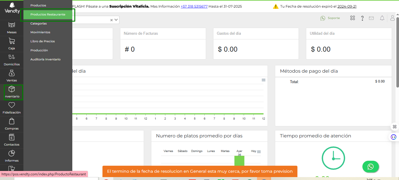 1. Ve al menú Inventario > Productos restaurante > Variaciones.