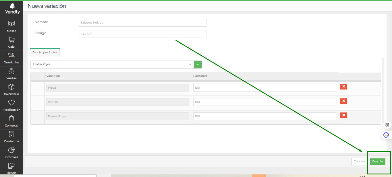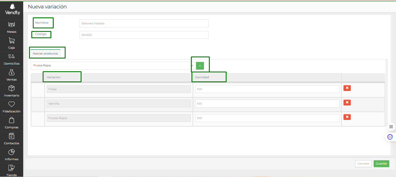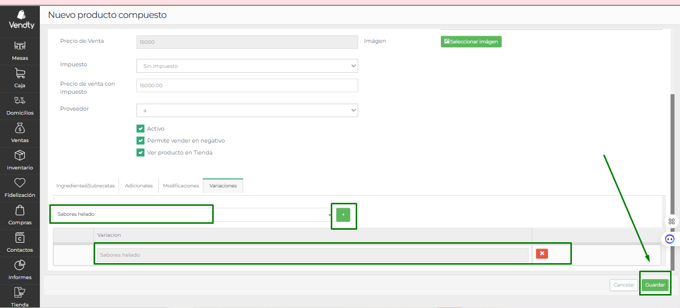 ➤ Coloca el nombre de la variación y selecciona las opciones que la componen.