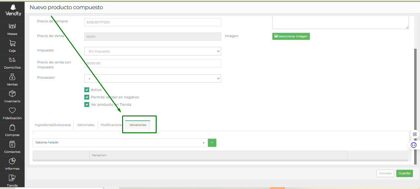 7. En la parte final del formulario del producto, haz clic en el botón “Variaciones”.