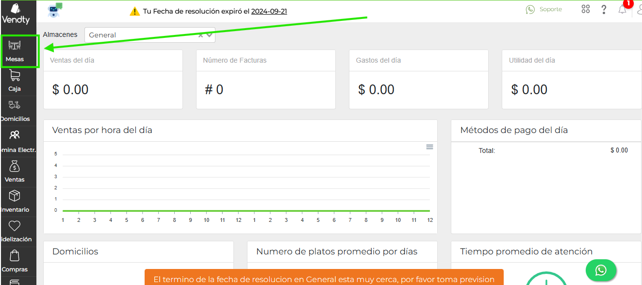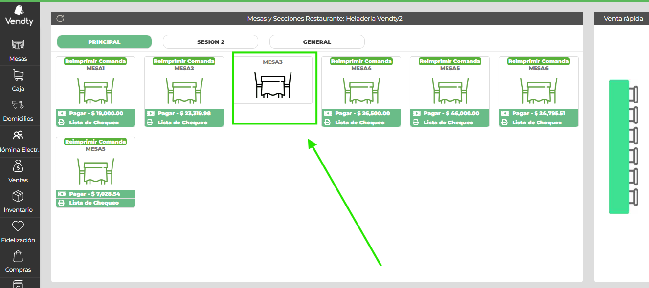 En el menú principal, selecciona la opción Mesas o Panel de mesas.