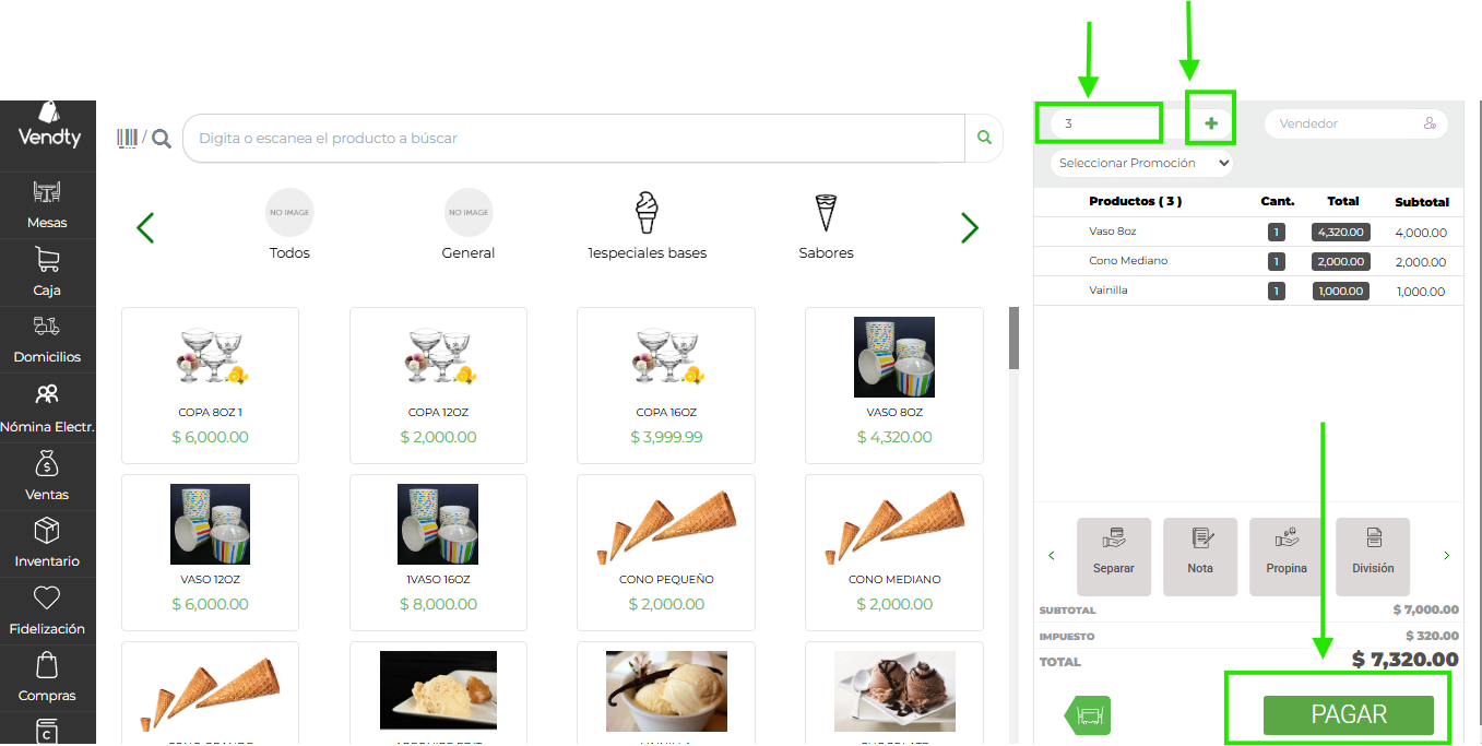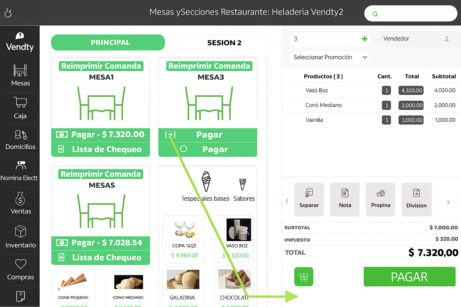 Cuando el cliente solicite la cuenta, haz clic en Pagar, o haz clic sobre la mesa y luego en Pagar.