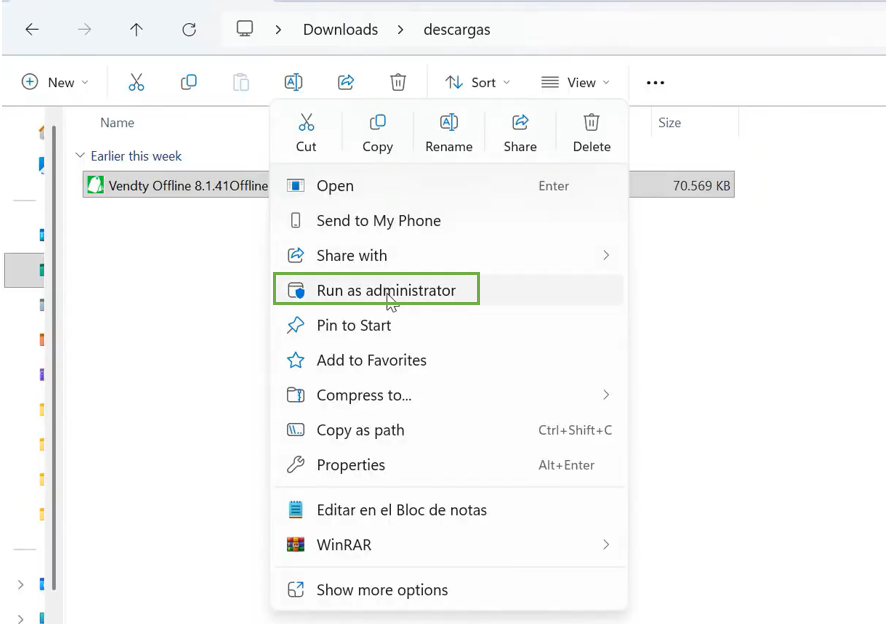 Abre el archivo descargado, dando clic secundario en ejecutar como administrador.