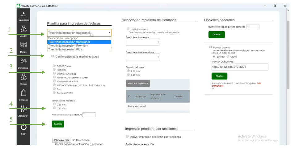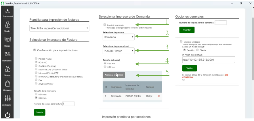 1. Imprimir comanda (Desde el botón caja generará factura y comanda a la vez)